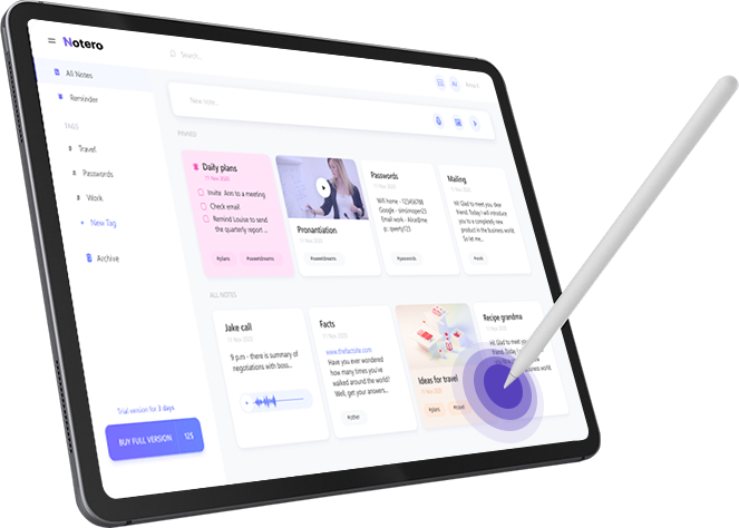 با یک یادداشت تمیز و بدون درهم و برهمی متمرکز و سازنده بمانید فضا. راه های انعطاف پذیر برای سازماندهی یادداشت های خود: هشتگ ها، نوت بوک های تو در تو، سنجاق کردن یادداشت ها در بالای لیست یادداشت ها و غیره